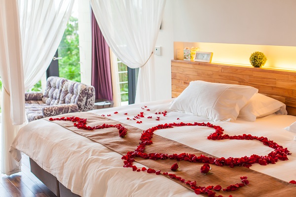 「플라워베드(침대위에장미꽃잎을뿌리는것)」를옵션으로추가할수있습니다.